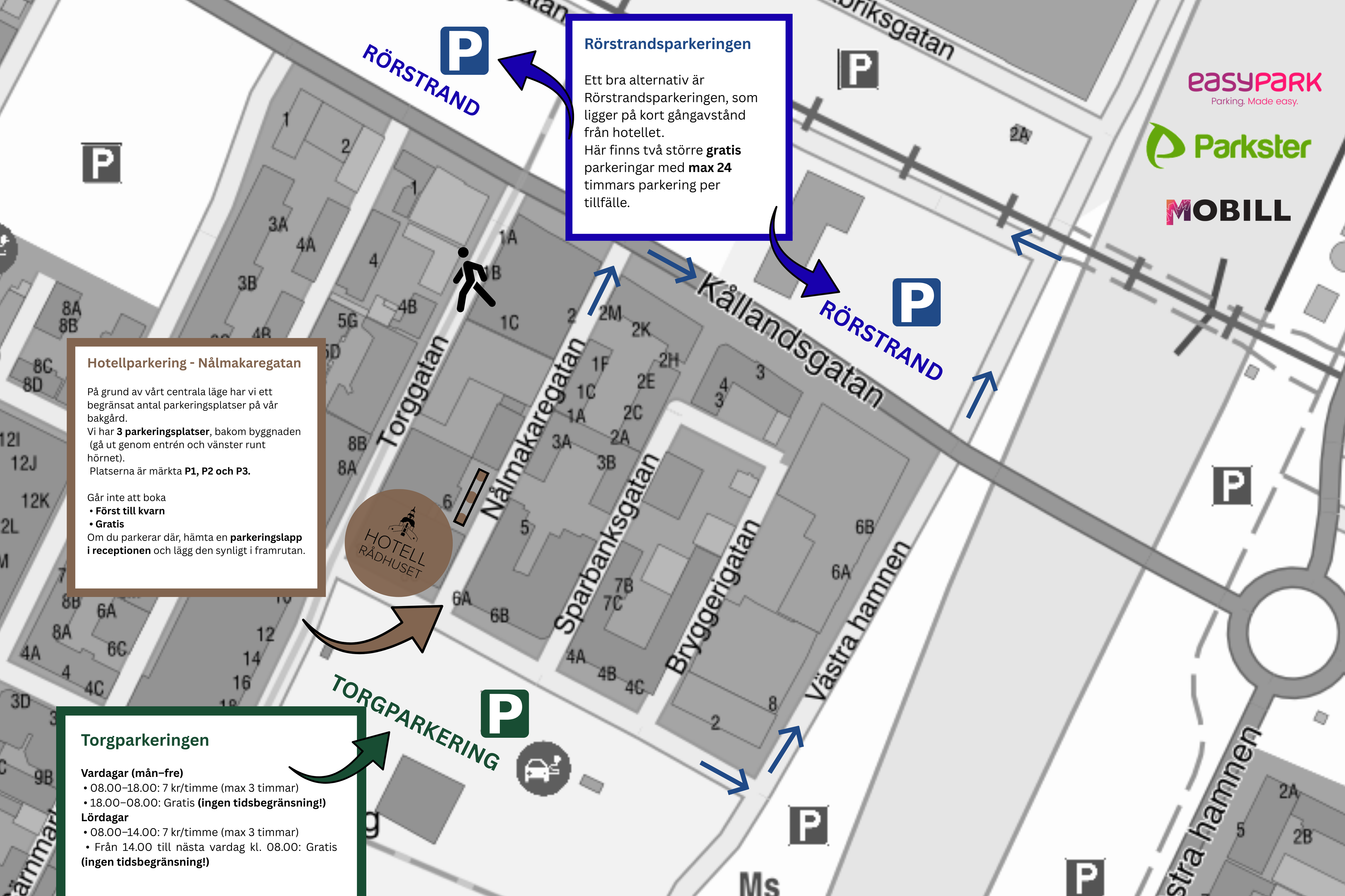 Observera: Parkeringsregler kan ibland ändras och skyltningen på plats gäller alltid. Ta därför gärna en extra titt på skyltarna där du parkerar. Parkering sker på eget ansvar.